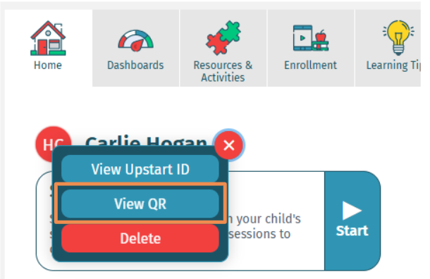 Caregivers can now generate a unique QR code for each child, making it easy for them to log in and begin their Upstart learning sessions on their own.