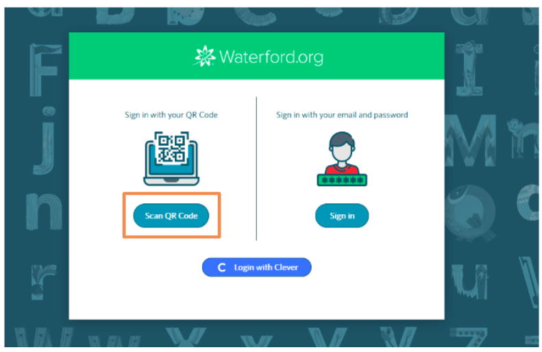 - From your child’s device, open the Waterford Early Learning app and select Scan QR Code.