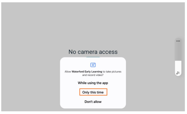 - Tap Allow Only this time to give my.waterford.org permission to open your child’s device’s camera.