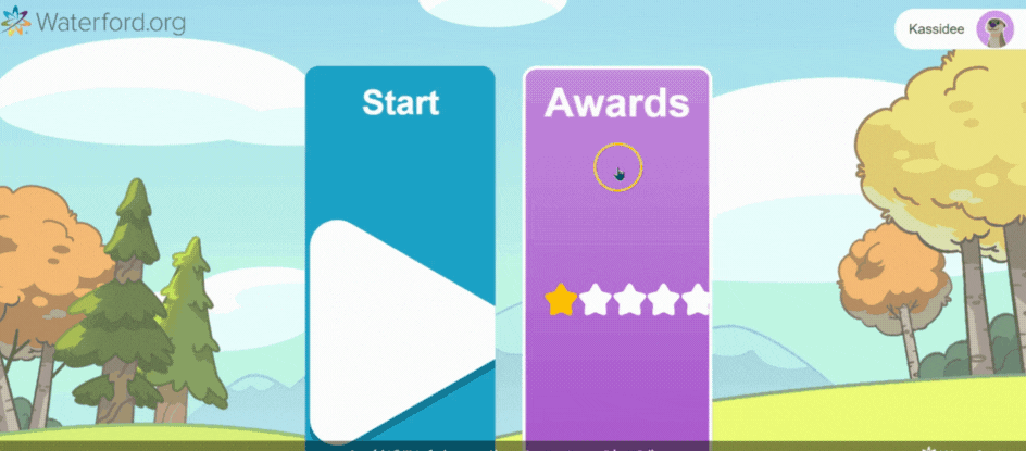 When a learner logs into their Waterford account for the first time, they'll see a locked purple tile on the homepage labeled Awards.