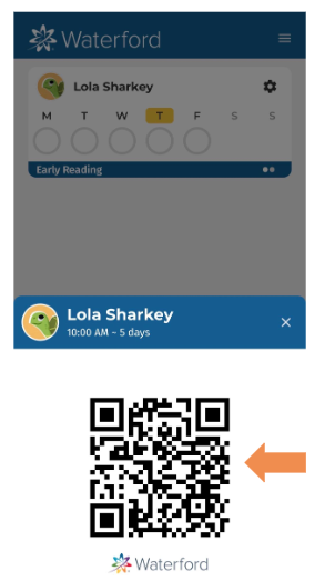 Caregivers can now generate a unique QR Code for each child, making it easy for them to log in and begin their learning sessions on their own. You can find the code by signing into your account either on the Waterford Family Browser or in the Waterford Family App.