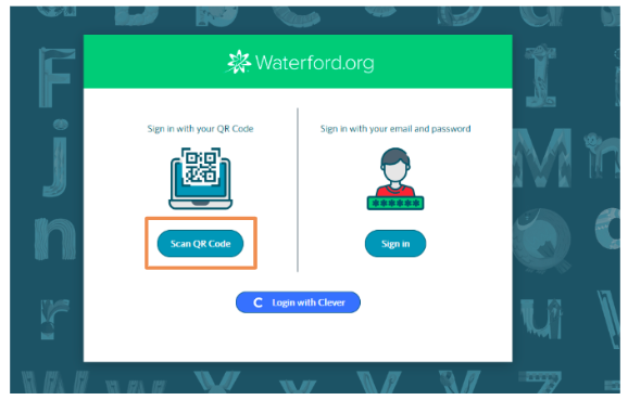 - From your child’s device, open the Waterford Early Learning app and select Scan QR Code.
