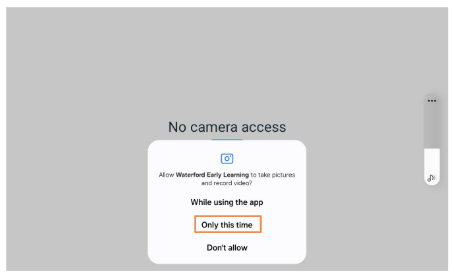 - Tap Allow Only this time to give my.waterford.org permission to open your child’s device’s camera.