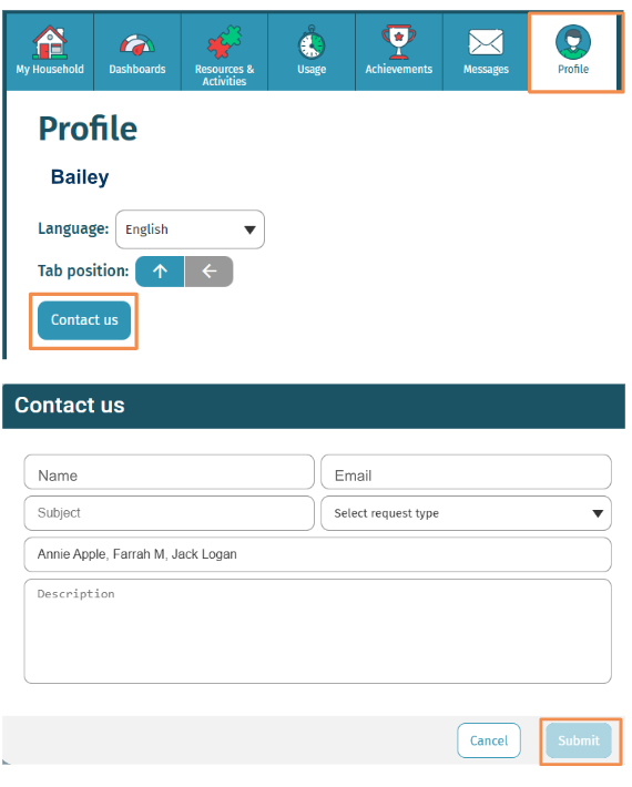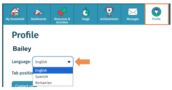 You can change your preferred language on the Profile tab. The options are English, Spanish, and Romanian.