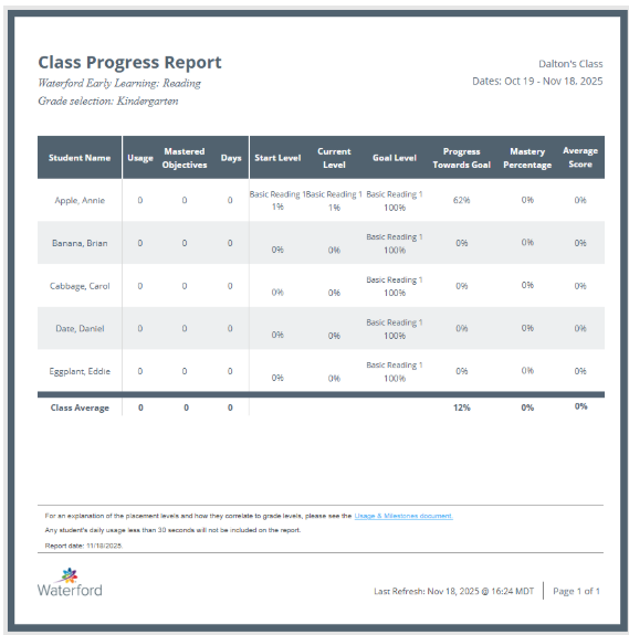 Waterford Early Learning: Progress Report for Teachers and Admin