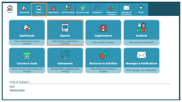 - Log in to Waterford Early Learning and visit the Reports tab.