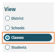 - To access a Class Standards Summary Report, you must first select Classes under View.