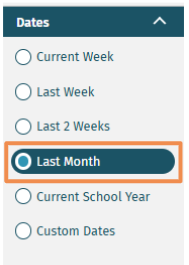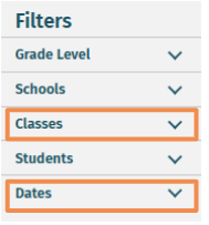 - Under Filters, select the Classes and Dates you would like to view.