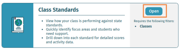 - Select Open on Class Standards Report.
