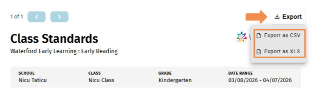 The Class Standards Report is ONLY available for the Early Reading Curriculum.